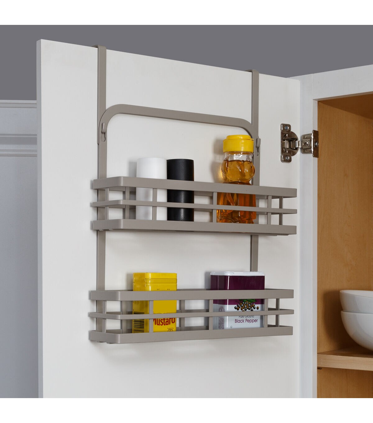 Honey Can Do 12 x 15 Gray 2 Tier Modern Over the Door Spice Rack