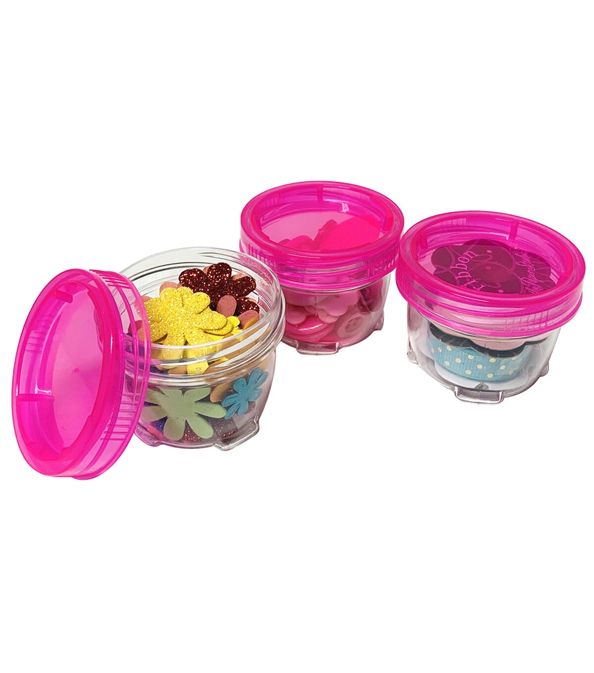 Everything Mary 2 x 1.5 Plastic Stackable Jars With Pink Lids 3pk
