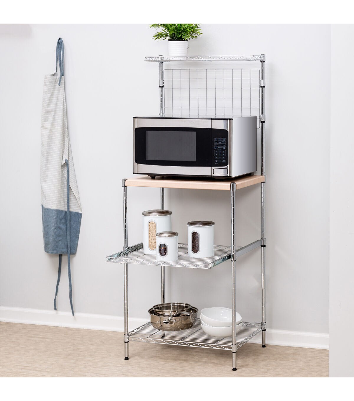 Honey Can Do 59 Chrome Wood Microwave Shelving Unit With Shelves