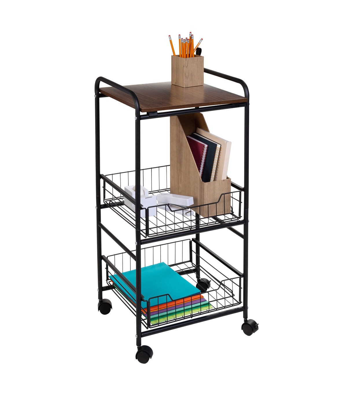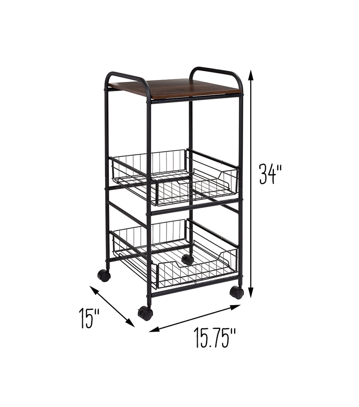 Honey Can Do 34 Black 3 Tier Slim Rolling Cart With Metal Baskets