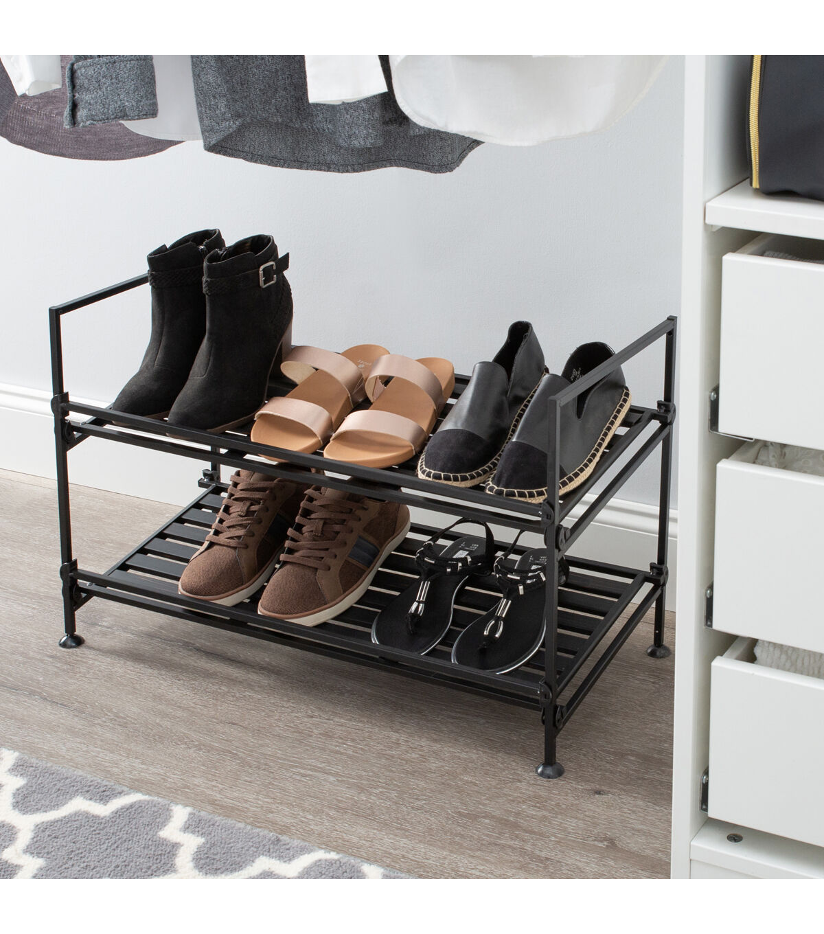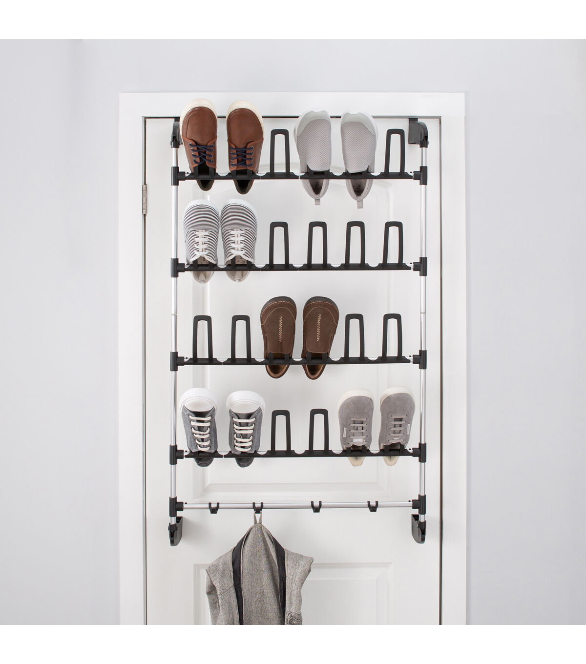 Organize It All 27 Black 12 Pair Over the Door Shoe Rack With Hooks